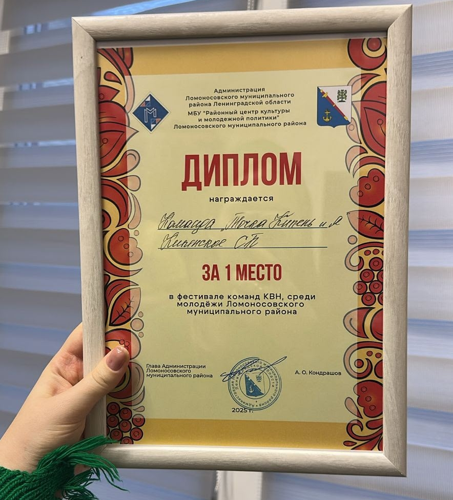 Администрация и Совет депутатов Кипенского сельского поселения поздравляют с победой команду «Точка Кипень и Я» в фестивале команд КВН среди молодежи Ломоносовского муниципального района Ленинградской области. Желаем новых побед и творческих успехов!!!